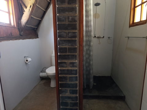 The bathroom has a shower, solar geyser (lukewarm to cold water) toilet and basin.